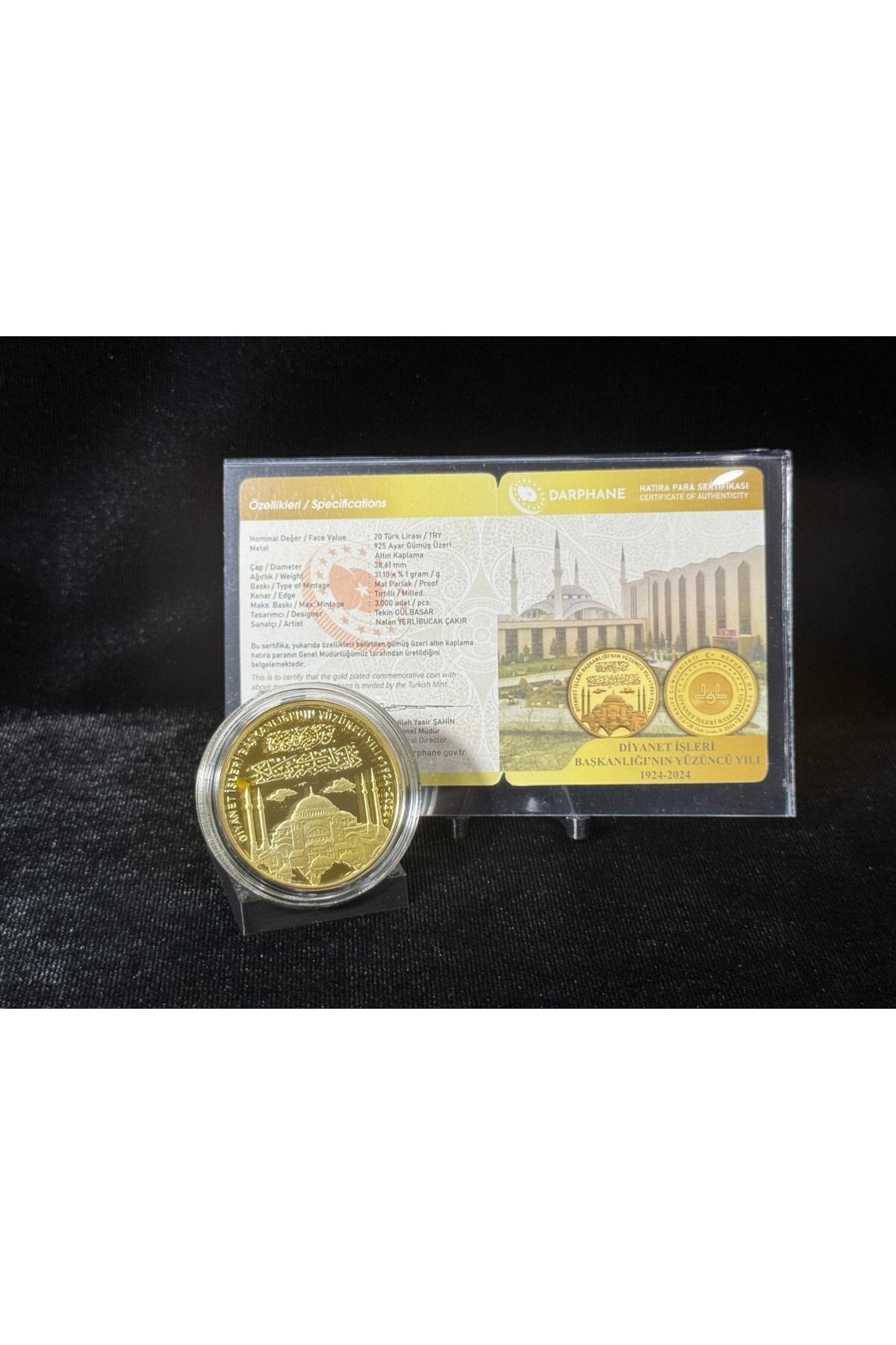 Cumhuriyet tarihinin en köklü kurumlarından biri olan Diyanet İşleri Başkanlığı’nın 100. kuruluş yılı anısına, Darphane tarafından büyük bir titizlikle üretilen bu hatıra sikke; hem manevi hem de tarihi değeriyle koleksiyon dünyasında özel bir konuma sahiptir.